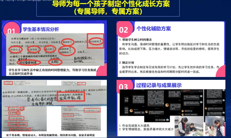 教育为本,革新致远。 早在2018年,我校率先启动4.0教育改革,以「全景全员导师制」和「大数据精准教学」为核心,创新打造双轨驱动+三位一体现代化育人体系。聚焦每一位学生的全方位成长,学校实行三年专属导师陪伴制度,一人一导师,全程跟进、全面关怀,覆盖思想引领、行为规范、心理疏导、习惯培养、生涯规划、人文素养等多元维度,真正做到全员覆盖、全程陪伴、全域育人。 同时,学校不断完善暖心育人配套服务: ✅ 24小时心理热线全天候守护学生身心健康 ✅ 家庭教育云课堂搭建家校共育桥梁 ✅ 多元活动载体筑牢五育融合成长阵地,家校协同、师生同行,构筑有温度、有厚度、有力度的全域育人生态。