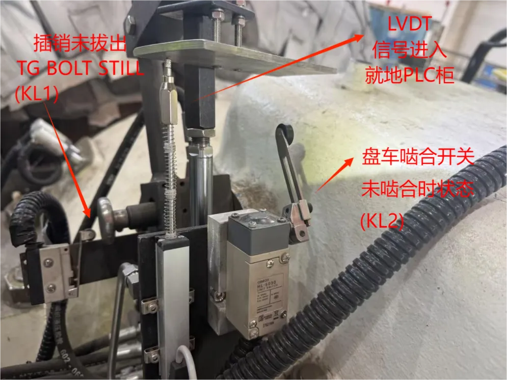 盘车啮合时,lvdt(左)和啮合开关(右)