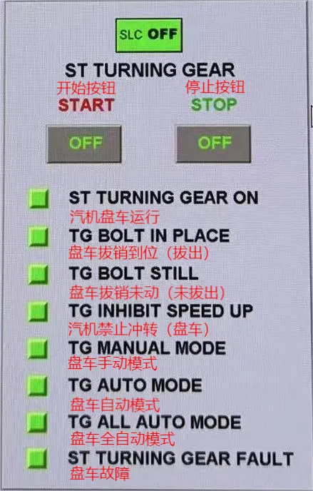汽机盘车开始按钮和停止按钮的逻辑: