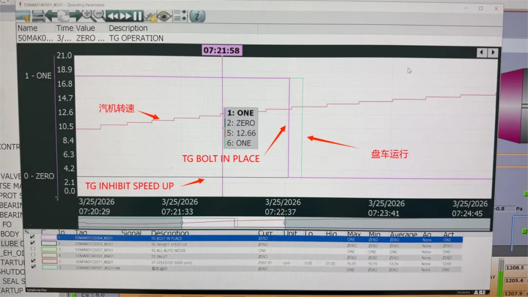 汽机盘车成功投运时的曲线状态: