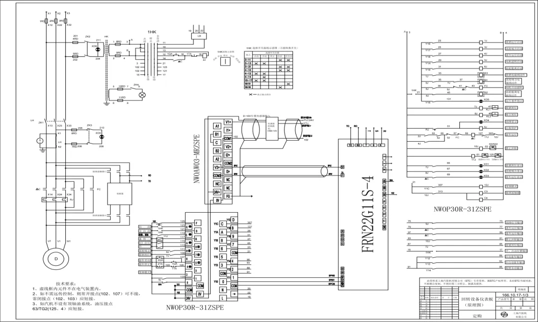 3、把 1-HK 切换至全自动档,3~11、4~10、3~21、102~121 接通。此时,所有就地及远程按钮将不起作用。