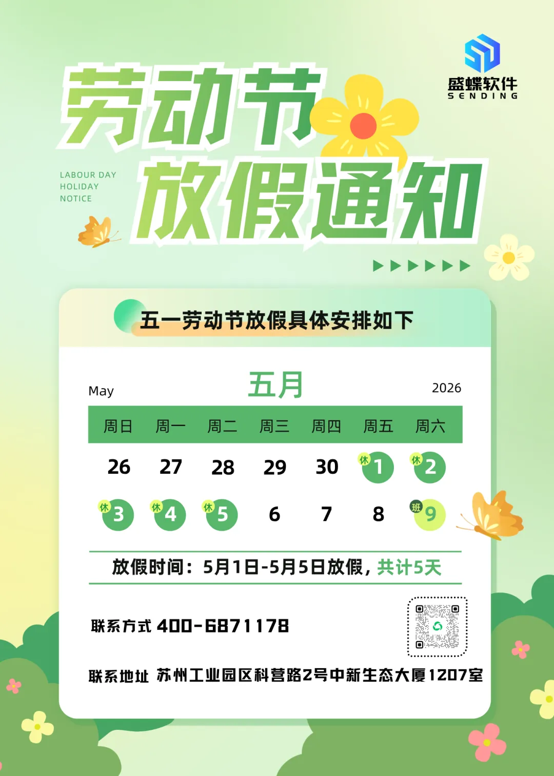 苏州盛蝶软件2026年劳动节放假通知