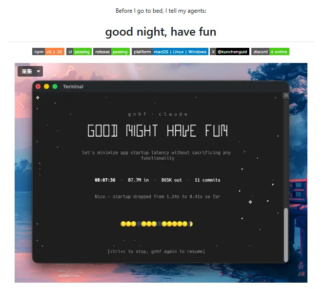 这是 gnhf 的玩法,全称「Good Night, Have Fun」,一句话唤起 Claude Code 或 Codex,进入全自动循环。