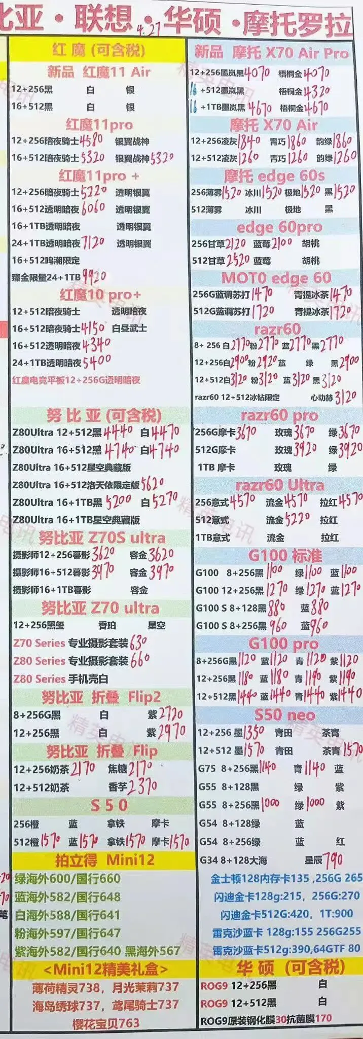 【2026年4月27日报价】深圳全新安卓手机、平板等产品批发报价