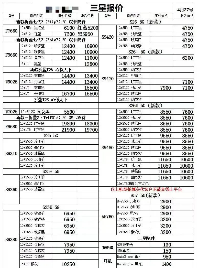 全新国行【港版/美版】三星手机报价