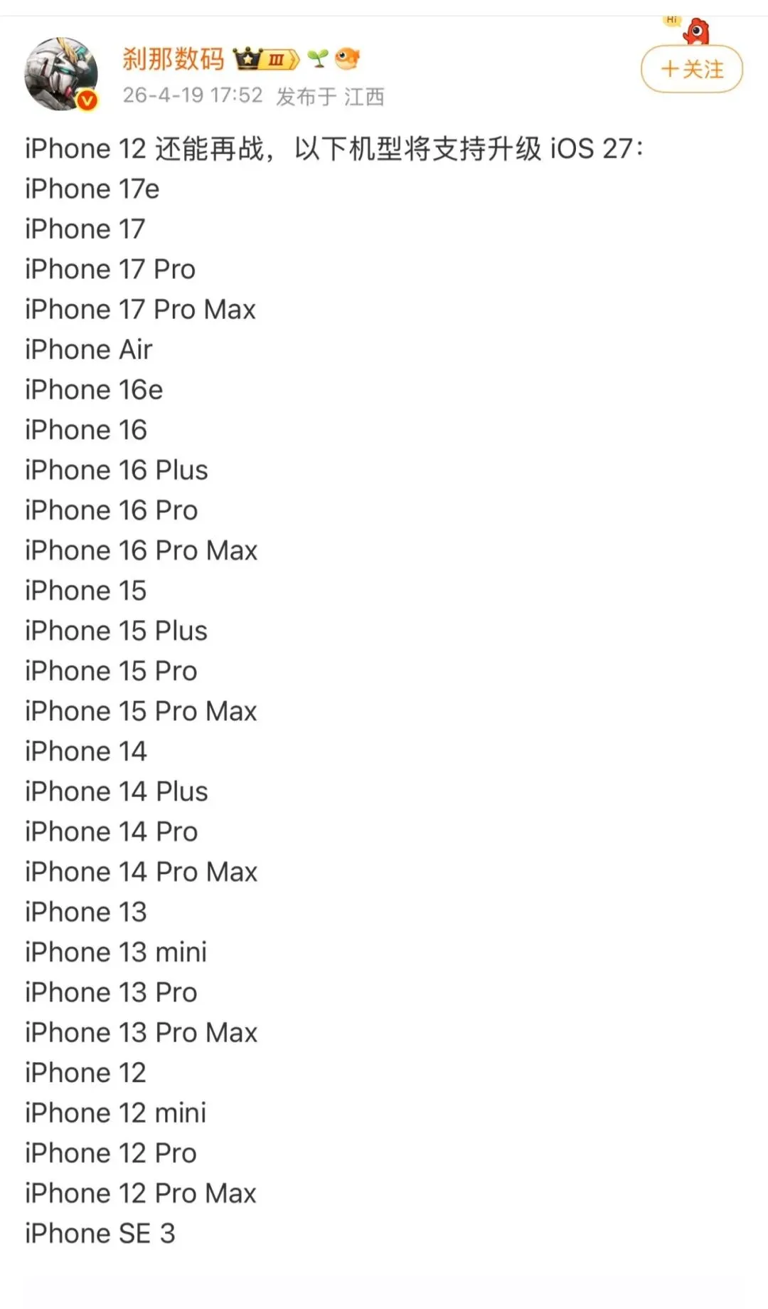 这四款iPhone将被淘汰!iOS 27支持机型曝光