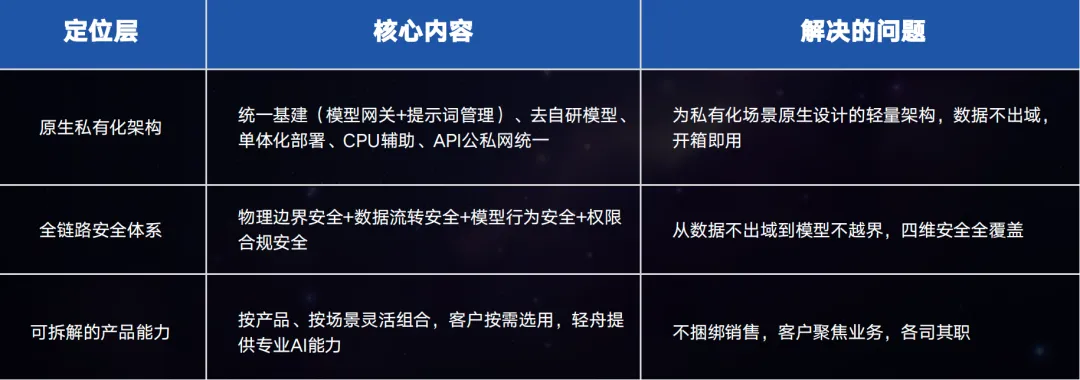 答案不是更大参数量的模型,也不是更炫酷的demo,而是通过私有化AI办公解决方案,面向组织级用户提供安全可控、部署轻量、效果可控的私有化AI服务。把AI变轻、把控制权开放、把接入变简单,破解组织数据不出域、通用AI不懂业务、传统私有化方案过重过贵等行业痛点。