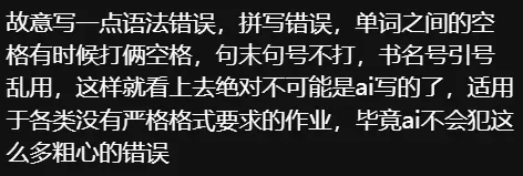讽刺的是,学生们没有脑力思考作业,但在和老师斗智斗勇如何看上去无痕使用AI这件事上,却是拼尽全力: