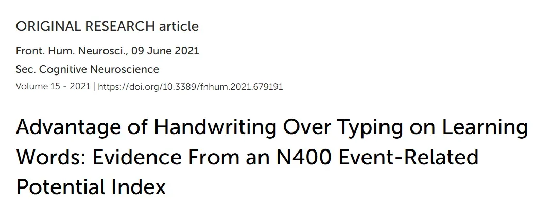 以2021年发表于Frontiers in Human Neuroscience的一项实验为例,研究者让受试者学习一组陌生语言词汇,并分别采用三种方式完成:纸笔手写、电子笔书写以及键盘输入,同时通过脑电图(EEG)记录学习过程中的神经反应。