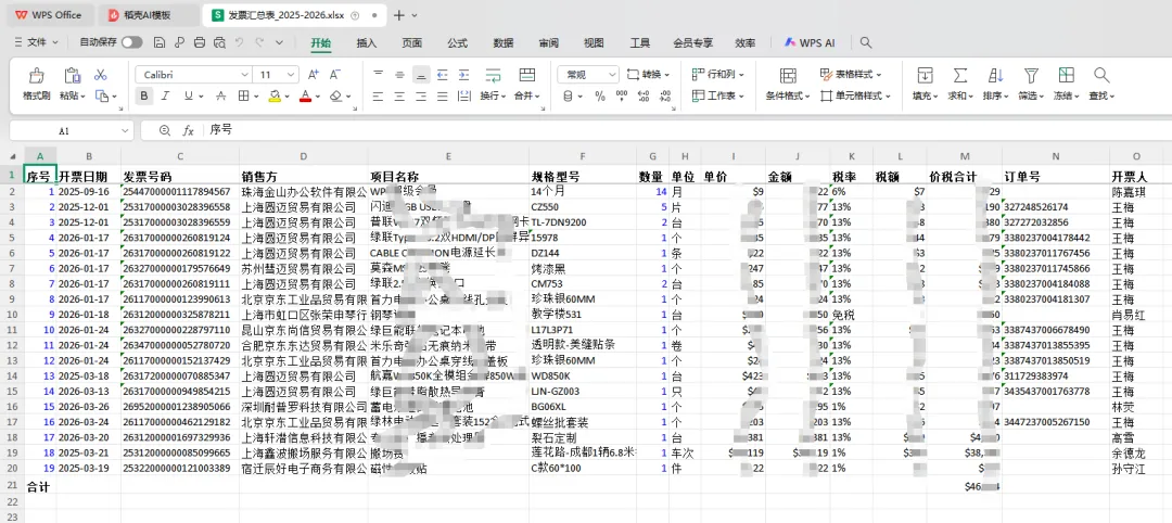 月底汇总要命 — 几十张发票,Excel里一行行录,录到半夜还出错。