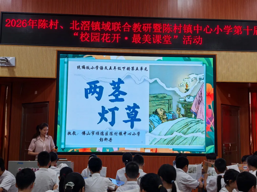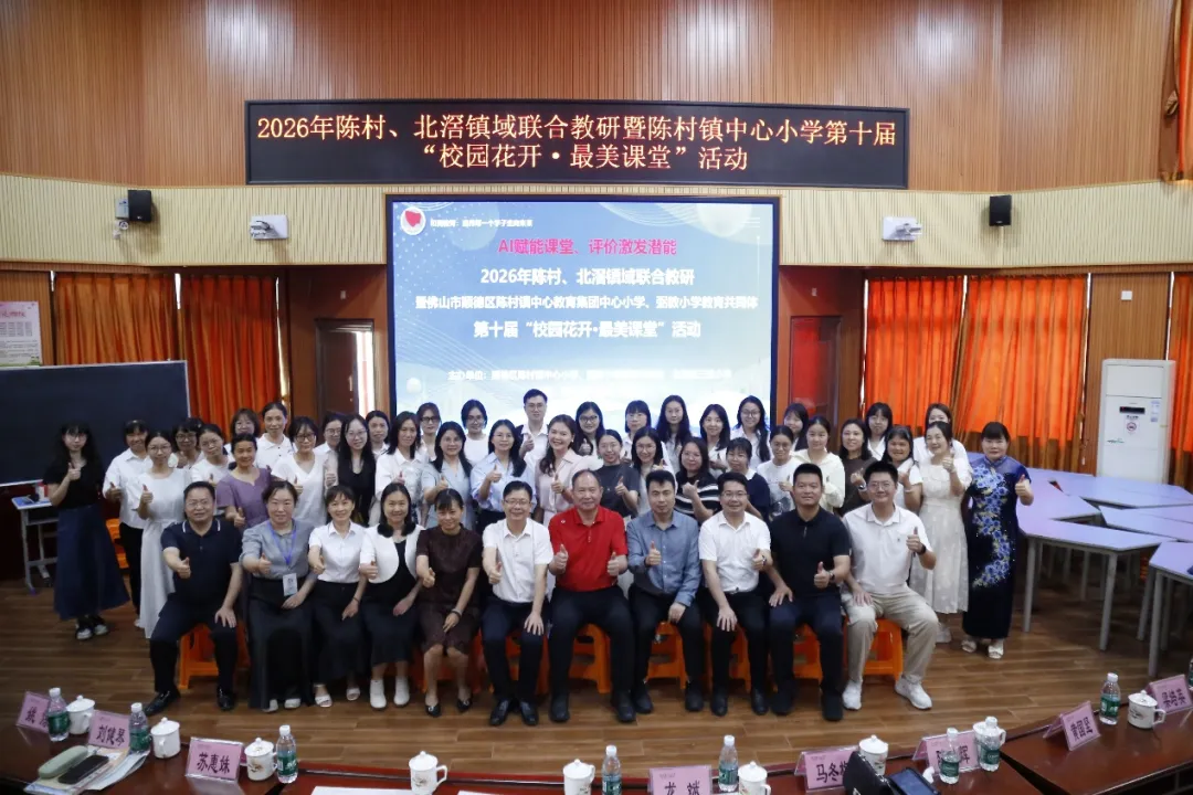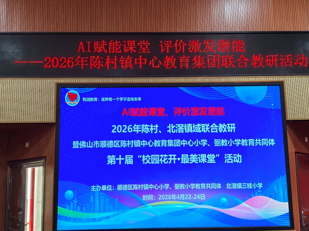 为深化潜能教育理念,推动人工智能与语文课堂深度融合,促进陈村、北滘镇域教育协同发展,2026年4月22日,陈村、北滘镇域联合教研暨佛山市顺德区陈村镇中心教育集团中心小学、弼教小学教育共同体第十届“校园花开·最美课堂”语文专场活动,在陈村镇中心小学顺利举行。本次活动以“AI赋能课堂、评价激发潜能”为核心主题,由陈村镇中心小学、弼教小学教育共同体与北滘镇三桂小学联合主办,三桂小学全体语文教师全程参与,在跨镇域教研交流中汲取智慧、提升素养。
