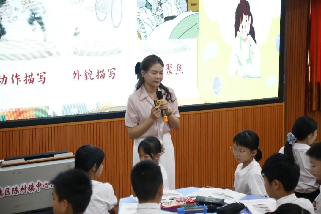 陈村镇中心小学彭柳丹老师执教五年级《人物描写一组》之《两茎灯草》,以“聚焦、对比、致用”为主线,引导学生品读细节、对比写法,精准剖析严监生的人物形象,课堂巧妙融入AI智能评价工具辅助习作点评,彰显“以生为本、理性用技”的理念。