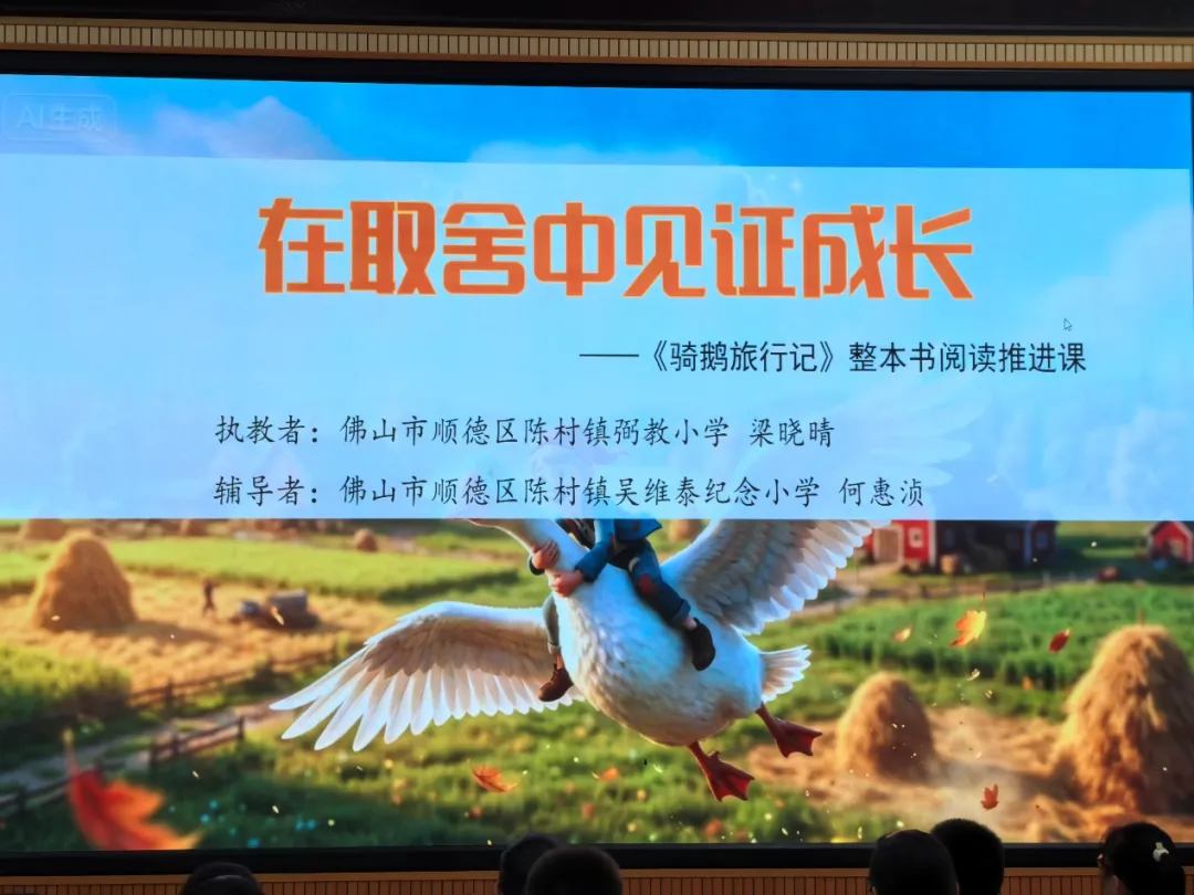 弼教小学梁晓晴老师带来六年级《骑鹅旅行记》整本书阅读推进课,创设“探险旅行社”趣味情境,借助AI发布学习任务,通过“交友地图”“价值天平”梳理人物关系,结合“心灵法庭”思辨活动深化主题,实现阅读策略与思维发展的双重提升。