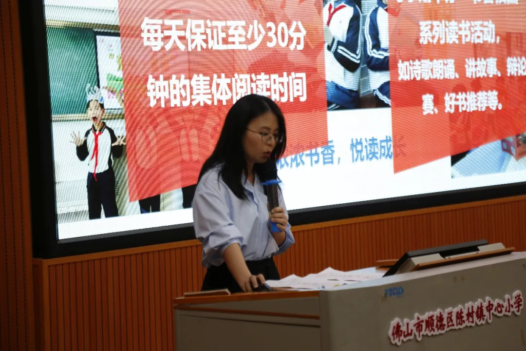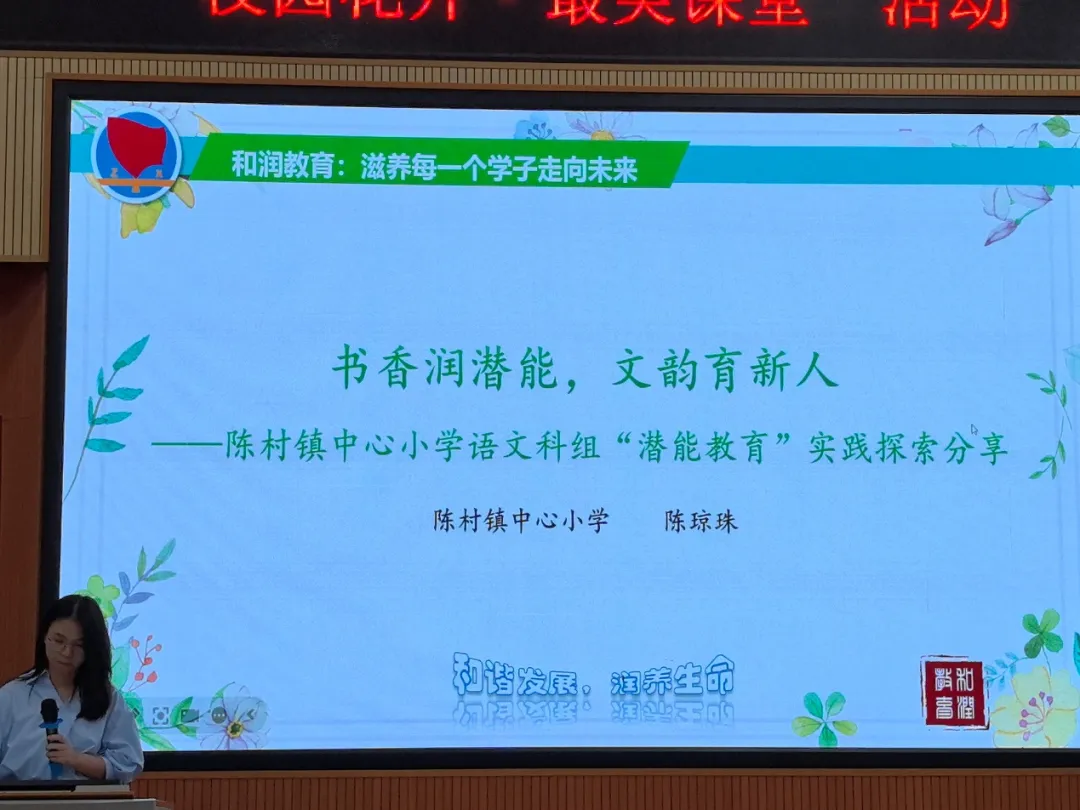 示范课结束后,陈村镇中心小学陈琼珠老师作《书香润潜能,文韵育新人》主题分享,围绕该校语文科组“潜能教育”实践,从课程构建、课堂实施、评价改革等维度,介绍激发学生潜能的具体路径,为参会教师提供了可借鉴的实践范例。