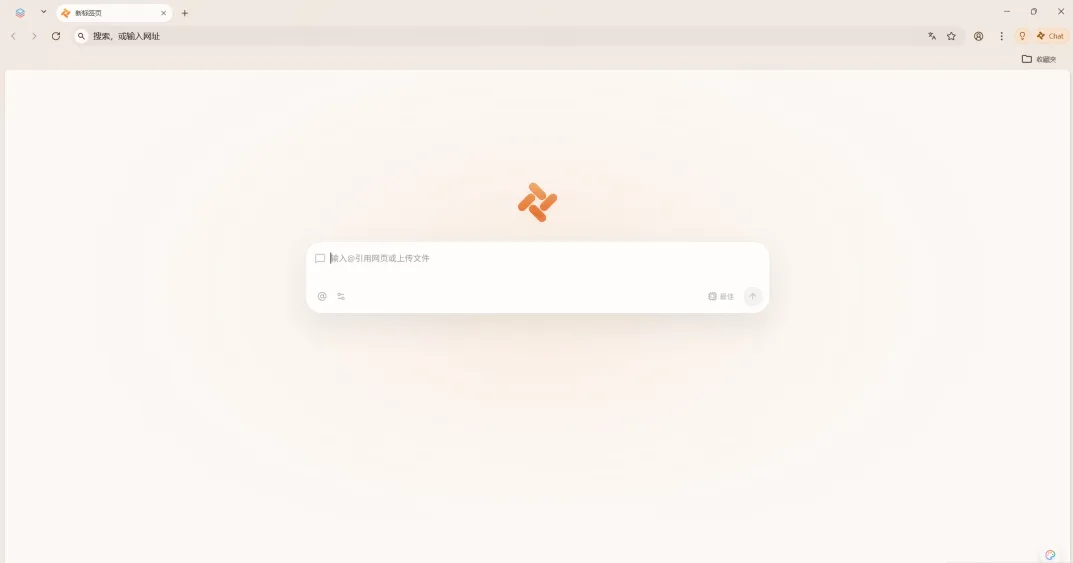 以入口功能为例,Tabbit的新标签页没有任何推荐内容,只有一个对话框,你可以在对话框中直接输入网址,更可以直接@任何一个打开的网页、标签页组、收藏夹,甚至上传本地文件,要求AI帮你干活。
