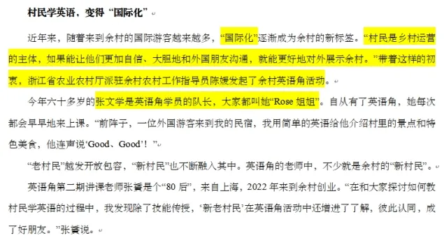 另一集《玫瑰》讲述的是湖州安吉余村一个特殊的组织,余村英语角的故事。故事里的主人公,是一群热爱学习的村民。