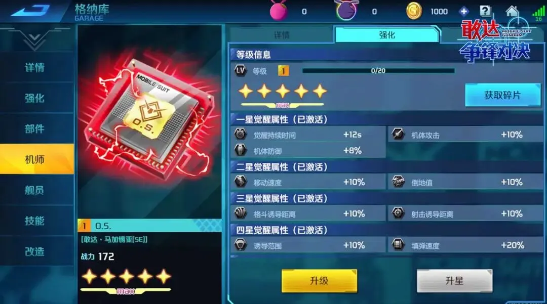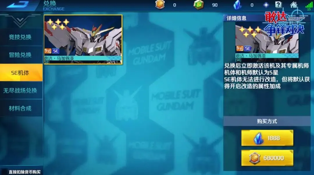 2、“SE机体”及其对应机师初始均为“5星”(无需升星)、“Lv.1”(需要升级);无改造(原改造后对应增加的属性数值将直接给予);无图鉴属性加成。
