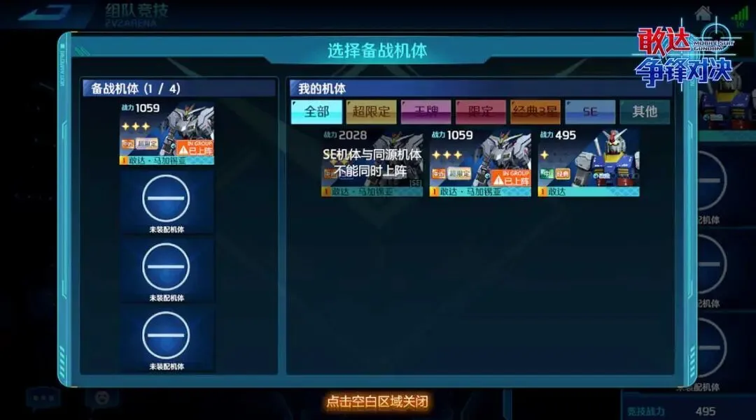 1、“SE机体”将被加入到游戏内各个模式中进行使用,例如“全力模式(原POWER模式)”、“单排竞技场-2V2单排”等其“同源机体”无法使用的模式。