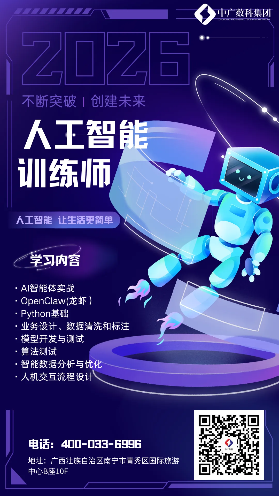 🔥 抓住 AI 风口,考官方认证!中广数科「人工智能训练师」培训,解锁蓝海高薪赛道