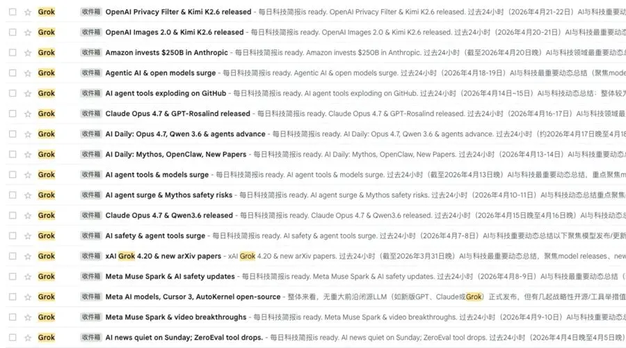 它在后台跑,你不需要管,以下是Grok每天准时发给我的简报。