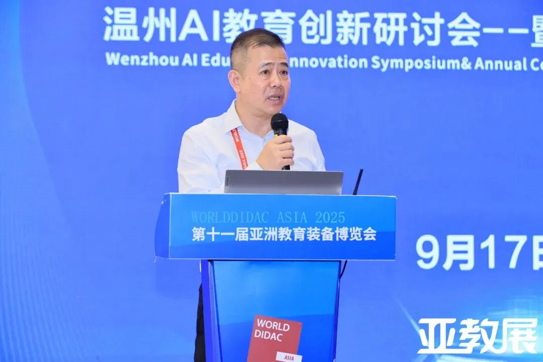 9月17日,第十一届亚洲教育装备博览会在杭州大会展中心隆重开幕。当日下午,作为亚教展重要系列活动之一,以“AI赋能教育,温州智创未来”为主题的温州AI教育创新研讨会成功举办。本次会议由温州市教育装备行业协会主办,旨在贯彻落实国家“人工智能+”行动部署与《温州市“人工智能+教育”三年行动计划》,展示温州作为教育部“智慧教育示范区”的创建成果,推动人工智能与教育深度融合,聚力落实“人工智能+教育”三年行动计划,共绘发展路径。