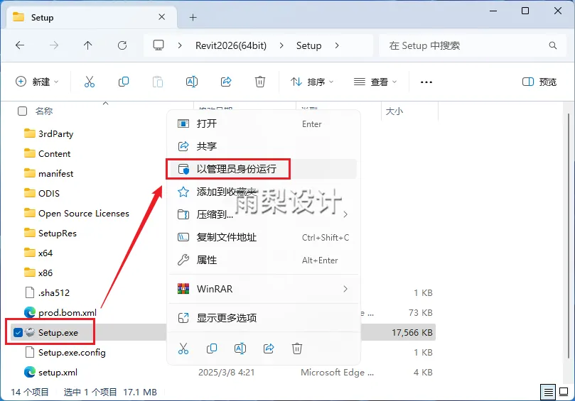 3.右键【Setup.exe】选择【以管理员身份运行】