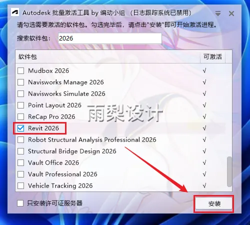 14.下拉勾选【Revit2026】点击【安装】
