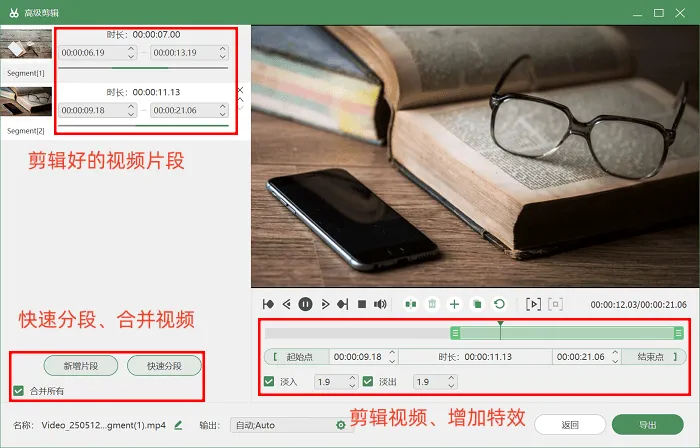 步骤3:录制完成后,可以直接在软件的预览窗口中查看录制结果。如需进一步编辑视频,可进入“高级剪辑”模块进行操作,如剪切不必要的部分、添加过渡效果等。