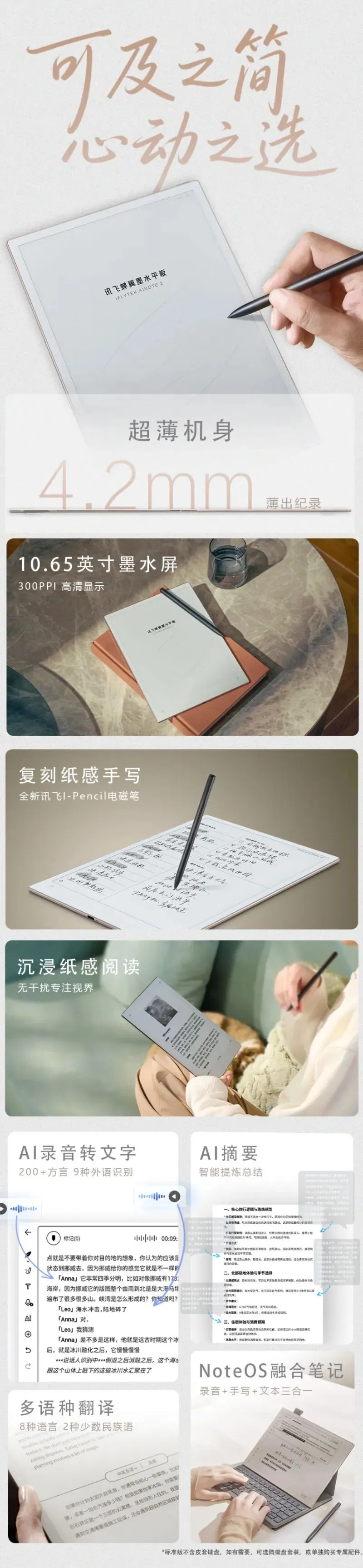 1、屏幕:10.65英寸1920×2560分辨率300PPI黑白墨水平面板,具备无蓝光、无频闪特性,(Wacom定制高性能电磁笔,支持8种笔型选择与20ms超低延迟,配合特制磨砂屏幕层,真实还原纸笔摩擦感,书写流畅自然)