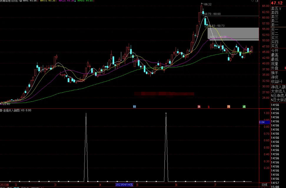 JZBYXS1:=LLV(LOW,13);JZBYXS2:=HHV(HIGH,13);JZBYXS3:=SMA((CLOSE-JZBYXS1)/(JZBYXS2-JZBYXS1)*100,5,1);JZBYXS4:=SMA((JZBYXS2-CLOSE)/(JZBYXS2-JZBYXS1)*100,5,1);AA:=JZBYXS3;BB:=JZBYXS4;JZBYXS5:=SMA(MAX(CLOSE-REF(CLOSE,1),0),5,1)/SMA(Abs(CLOSE-REF(CLOSE,1)),5,1)*100;CC:=EMA(JZBYXS5,3);XG:crOSS(CC,BB)AND CC>=REF(CC,1) AND BB<=REF(BB,3)AND CC>=49.5 AND MA(C,3)>=REF(MA(C,3),1)AND MA(C,7)>=REF(MA(C,7),1) AND MA(C,60)>REF(MA(C,60),3);