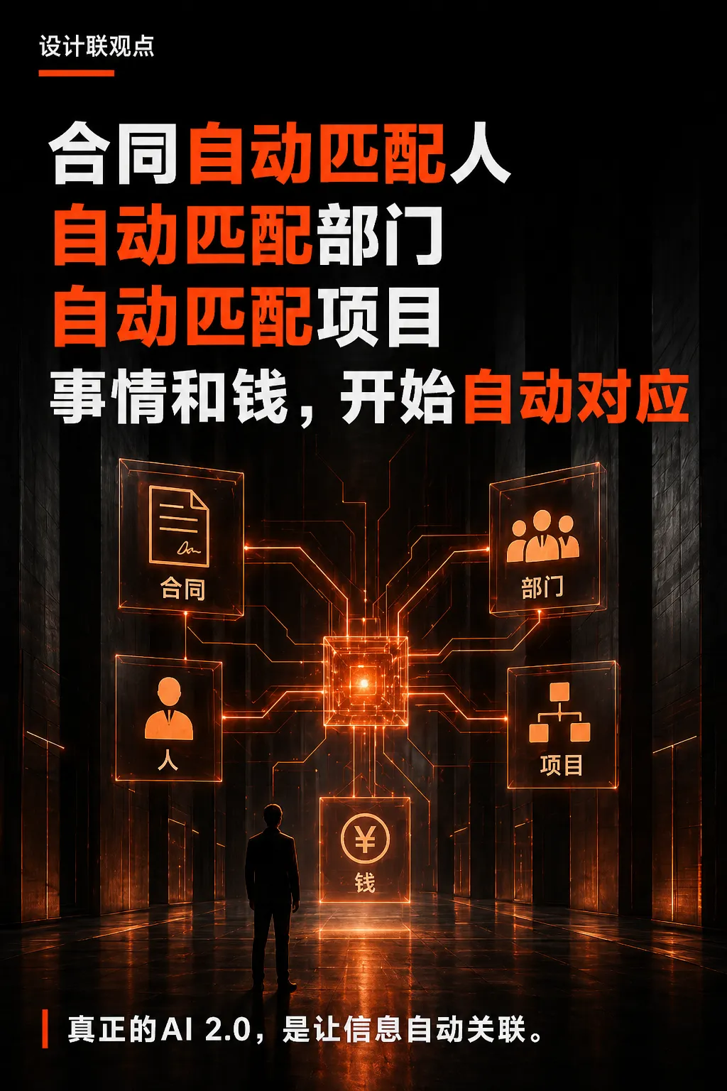 第二,设计联AI 2.0。帮助设计公司、装饰公司、供应链企业,把AI放进真实流程里,进入项目、合同、财务、人事、工程落地与企业知识沉淀,推动组织协同升级。