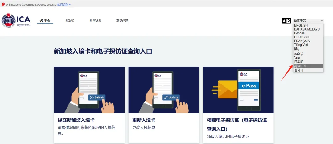 电子入境卡是新加坡移民与关卡局(ICA)推出的一项线上入境信息提交服务。所有非新加坡公民和永久居民在入境前,必须在线填写并提交,方便政府管理和核实入境信息。