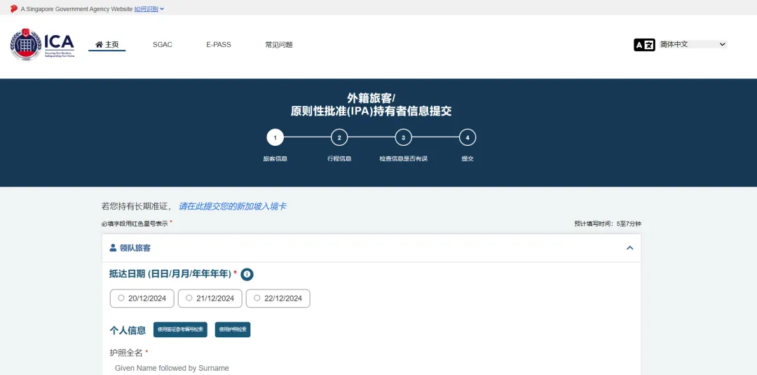 新加坡 丨新加坡电子入境卡PC端填写详解
