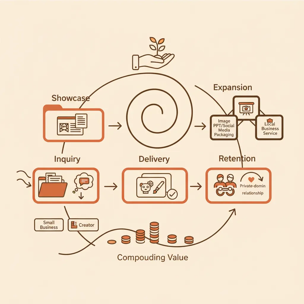 长期赚钱的关键,不是一次出图,而是把客户沉淀成复购网络