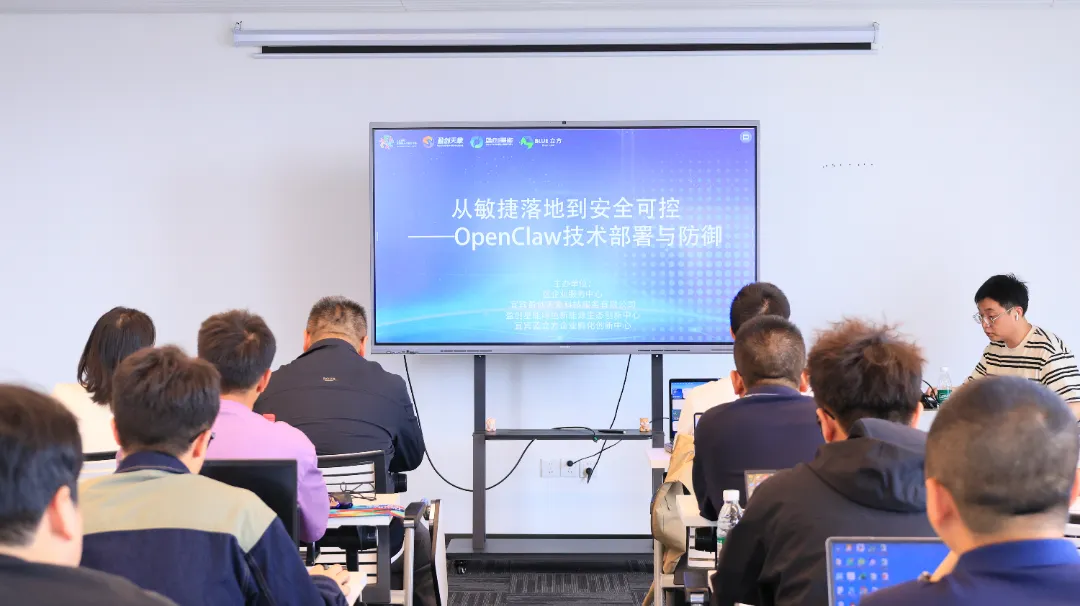4月24日下午,由区企业服务中心、宜宾盈创天象科技服务有限公司、盈创星能绿色新能源生态创新中心、宜宾蓝立方企业孵化创新中心联合主办的“从敏捷落地到安全可控——OpenClaw技术部署与防御”交流会成功举办。现场共计约30人围绕小龙虾OpenClaw技术的落地实践与安全防御展开深入学习和交流。