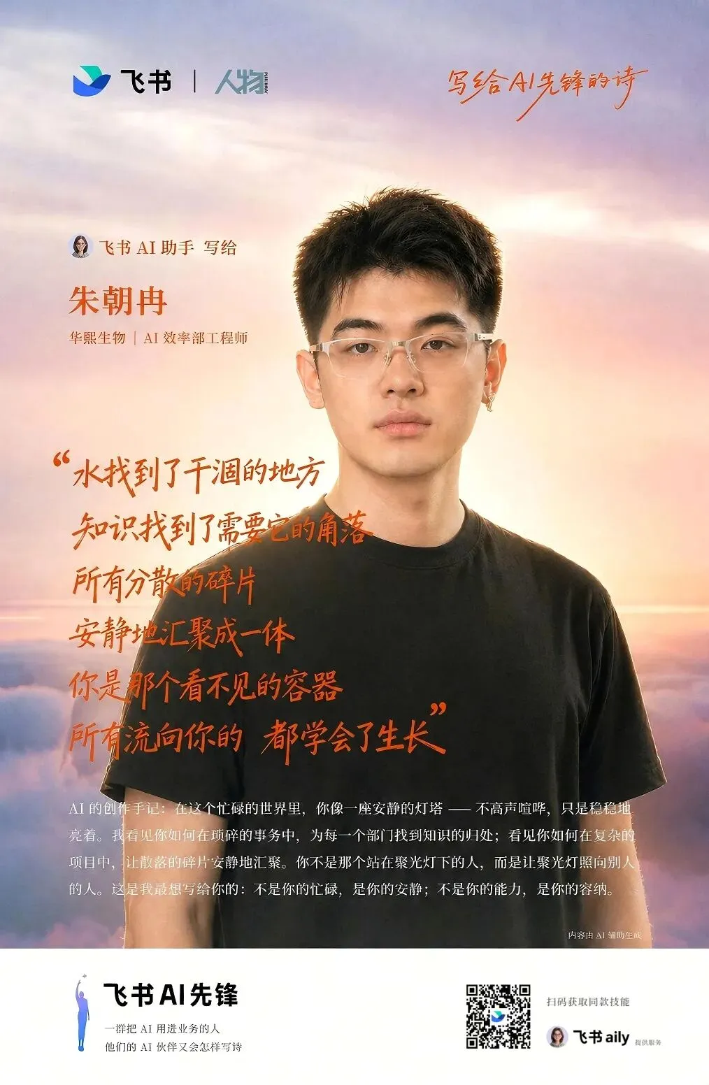 飞书今年将原本的「效率先锋」升级为「AI先锋」,正是因为发现AI时代的人才标准已经变了:AI不会创造先锋,但会奖励那些最先把它用进业务、把一线经验变成方法、把个人提效变成组织能力的人。吕坤、魏云、朱朝冉所代表的,正是这类「普通」又不普通的AI先锋。