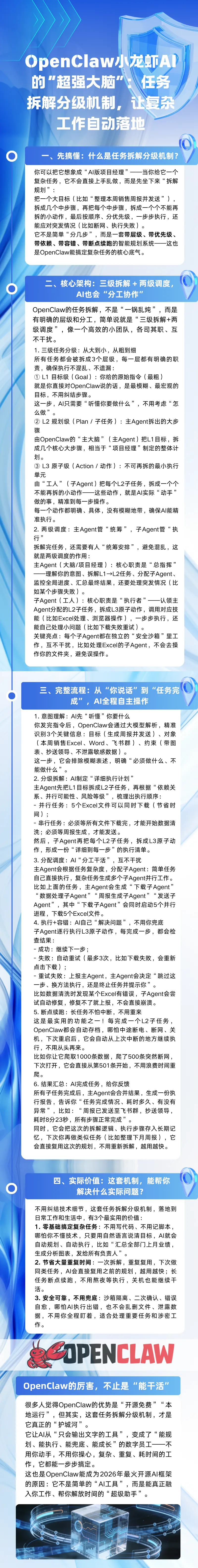 OpenClaw小龙虾AI的“超强大脑”:任务拆解分级机制,让复杂工作自动落地