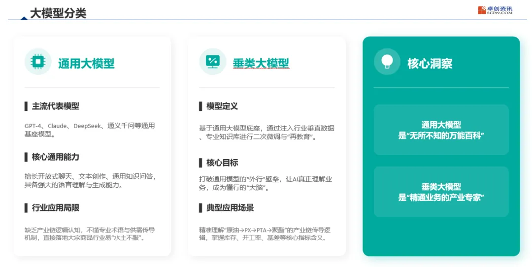核心结论:通用大模型是“万能百科”,垂类大模型是“可决策的产业专家”。