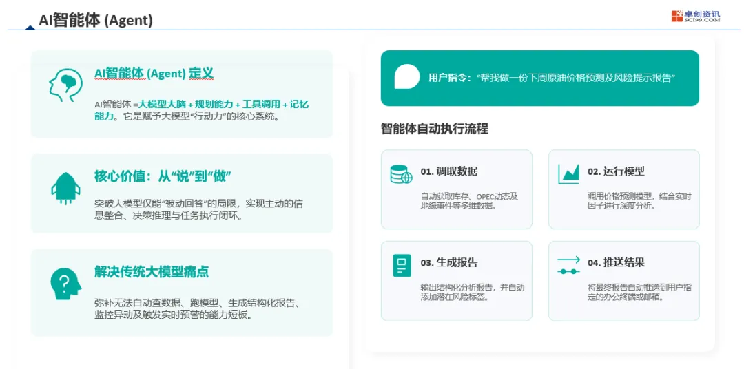 未来,卓创资讯将继续坚守产业数据 + 垂类大模型 + 行业智能体的硬核路线,以真实数据为基、以专业模型为脑、以安全执行为手,把 AI 能力真正落地到每一个业务场景,助力大宗商品行业实现更智能、更高效、更安全的数字化升级。