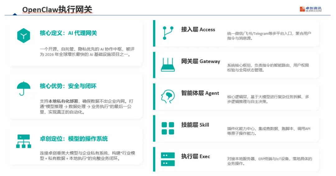 谁能够率先将垂直行业知识(模型)、自动化工作流(智能体)与内网安全执行(网关) 无缝融合,谁就能在这场产业智能化的浪潮中,构建起真正的竞争护城河。