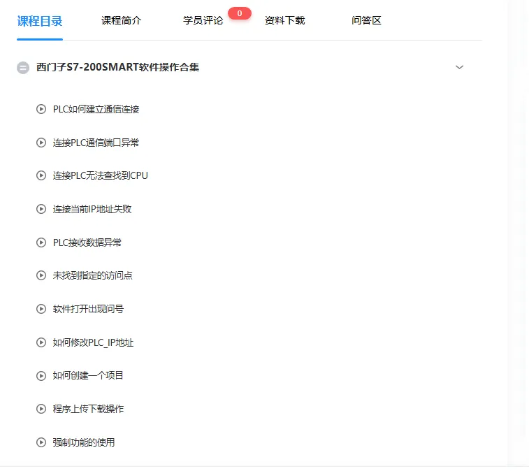 本课程主要针对S7-20SMART编程软件的基本操作,以某个知识点为目标,特别适合基础学员学习,涉及到一些常用的软件操作和一些使用技巧,以及经常用到的密码保护、库指令添加方法、符号表的使用。调试监控程序等操作。
