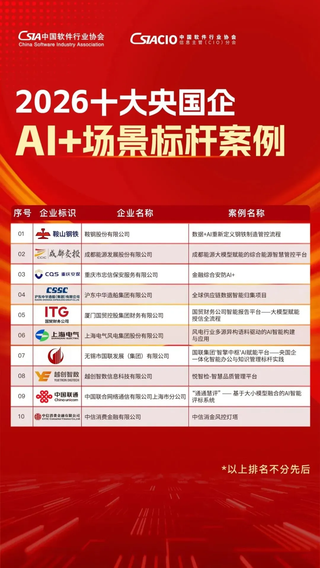 2026 十大央国企 AI + 场景标杆案例入选名单