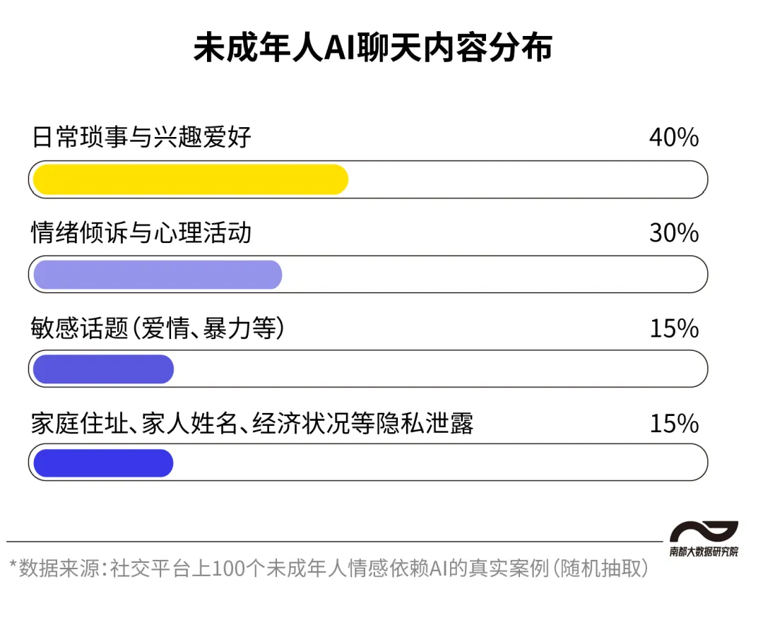 有报道提到,中国青少年研究中心在2025年对8000余名未成年人调查显示:两成多孩子出现“想依赖AI,不想自己思考”的惰性;同样有两成多倾向于“只和AI聊天,不愿与真人交流”。