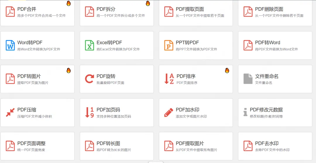 PDF工具一条龙,告别格式焦虑PDF合并、拆分、转Word、转图片、加水印、去水印、压缩、排序……十几种PDF操作全免费。再也不用到处找”PDF转Word免费版”然后踩坑了。