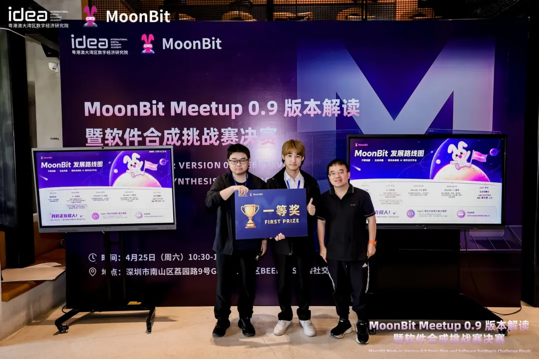 4 月 25 日,MoonBit 大型软件合成挑战赛决赛暨 Meetup 0.9 版本专场顺利举行。本次挑战赛项目围绕软件合成与 AI 工程实践展开探索,最终国内 10 个项目入围决赛阶段,进行现场答辩与成果展示。同时,在众多海外的项目中,其中 7 个项目 通过筛选,进入了评选阶段。