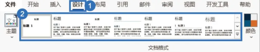 在【设计】选项卡功能区的【文档格式】组中,单击选择需要的样式即可。
