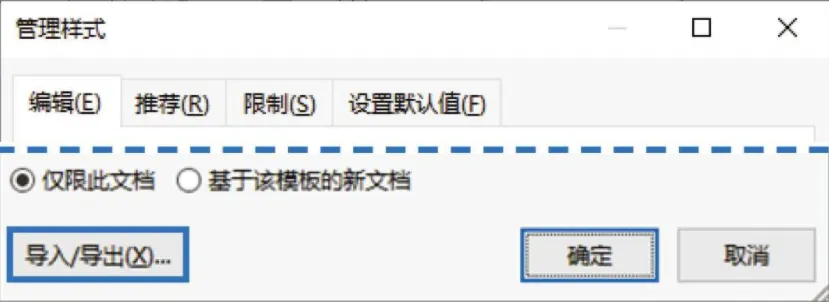 2、在弹出的【管理样式】对话框中,单击左下角的【导入/导出】按钮。