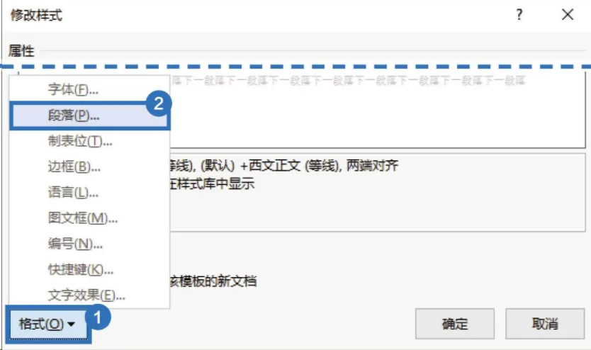 2、在弹出的【修改样式】对话框中单击【格式】按钮,选择【段落】选项。