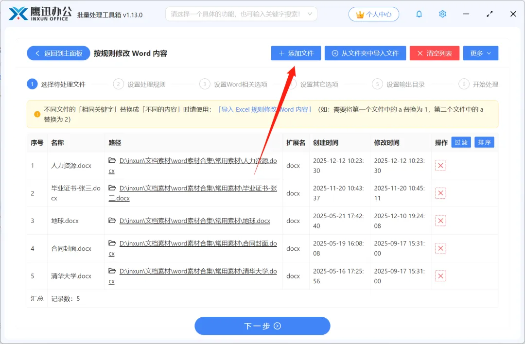 适应场景:适合多个word同时需要修改某一指定内容,批量替换关键字的场景。