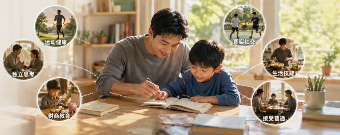 家长:先放过自己。很多焦虑是家长自己卷出来的——怕孩子不如别人家的,怕孩子未来没工作,怕自己没面子。接受自己是个普通人,接受孩子也是个普通人,全家都能松一口气。